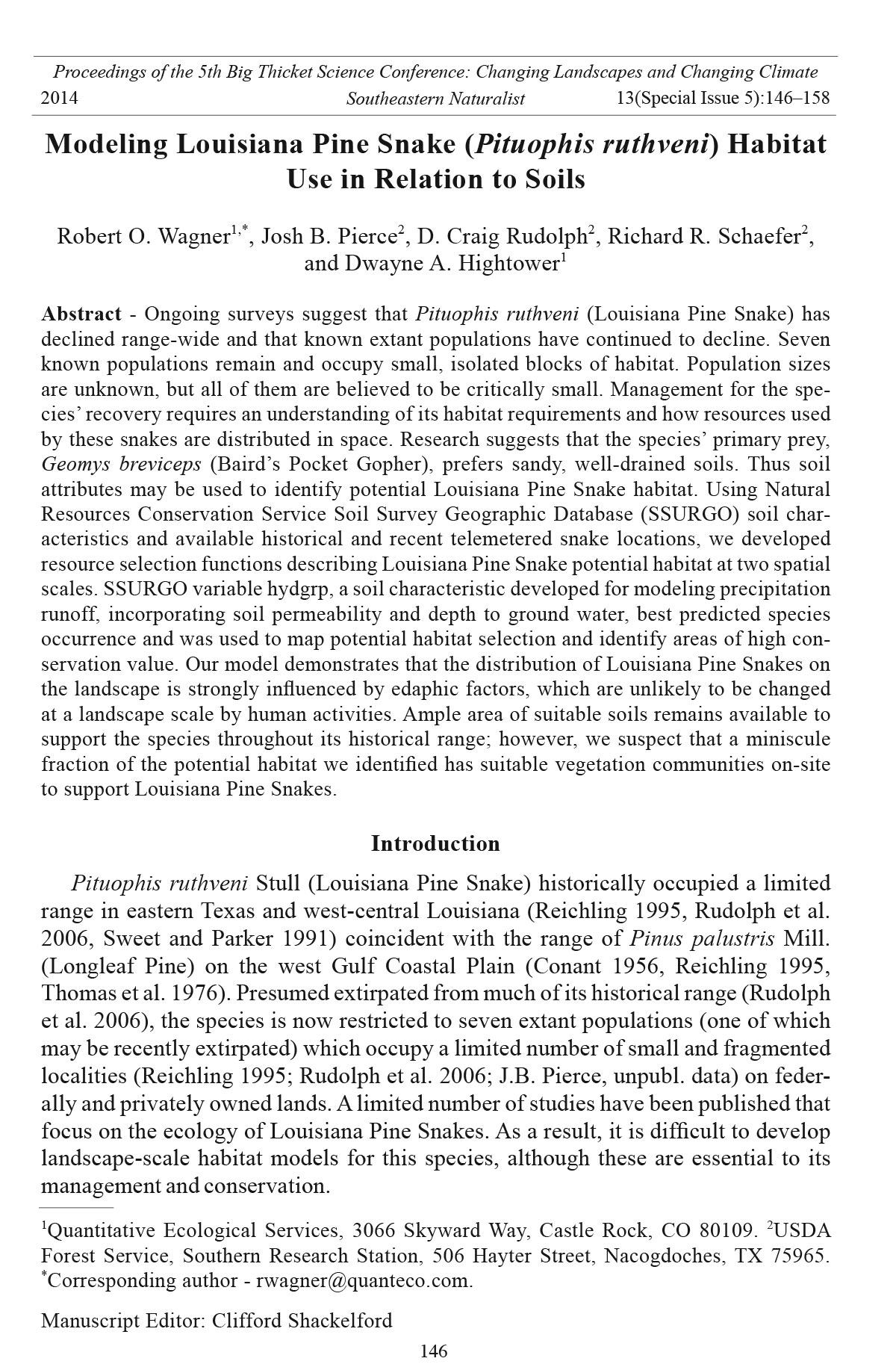 2014 Southeastern Naturalist 13(Special Issue 5):146–158