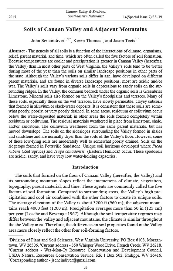The soils that formed on the floor of Canaan Valley (hereafter, the Valley) and