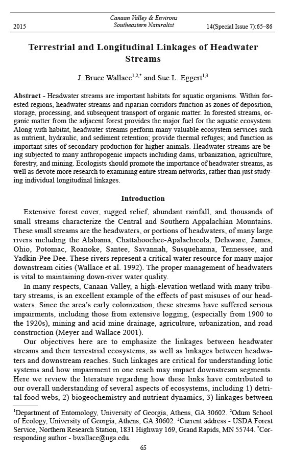 Webster, J.R., J.L. Tank, J.B. Wallace, J.L. Meyer, S.L. Eggert, T.P. Ehrman, B.R. Ward,