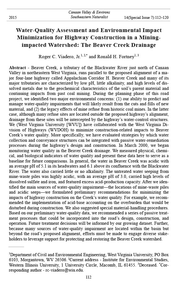 Roger C. Viadero, Jr.1, 2,* and Ronald H. Fortney1, 3