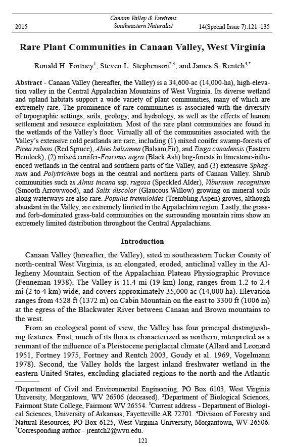 Ronald H. Fortney1, Steven L. Stephenson2,3, and James S. Rentch4,*