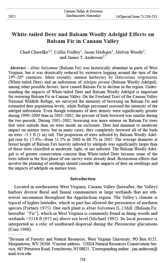 (White-tailed Deer) and an infestation of Adelges piceae (Balsam Woolly Adelgid),
