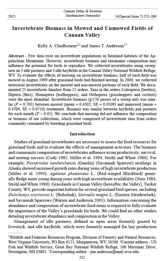 Abstract - Few data exist on invertebrate populations in farmland habitats of the Appalachian