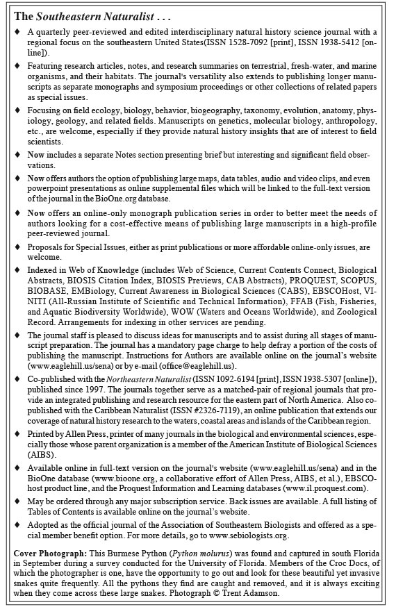Southeastern Naturalist, Volume 15, Special Issue 8 (2016)