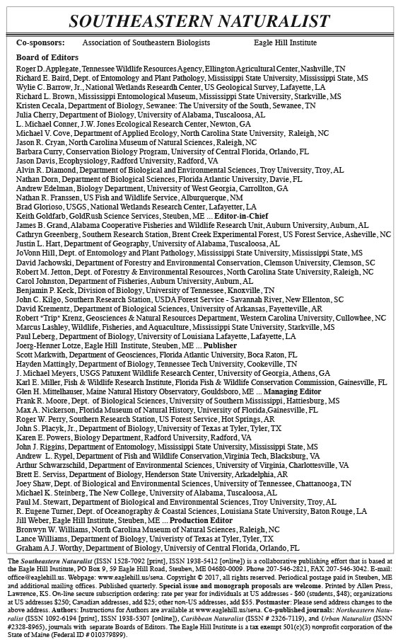 Southeastern Naturalist, Volume 15, Special Issue 8 (2016)