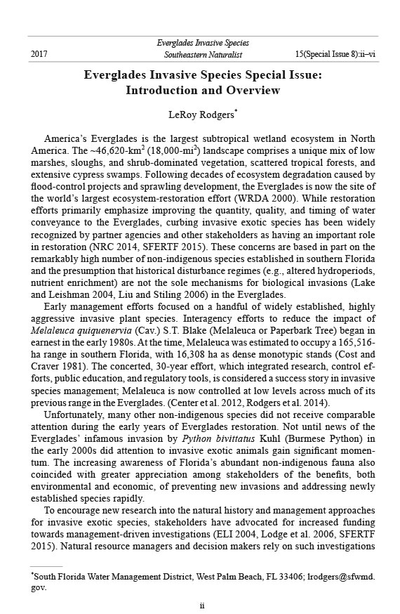 2017 Southeastern Naturalist 15(Special Issue 8):ii–vi