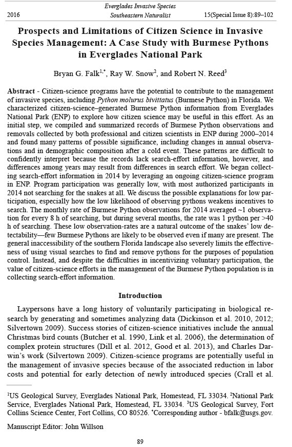 a citizen-science program for Burmese Pythons in Florida.