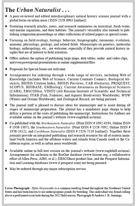 Inside Front Cover of the Urban Naturalist, Number 1, 2014