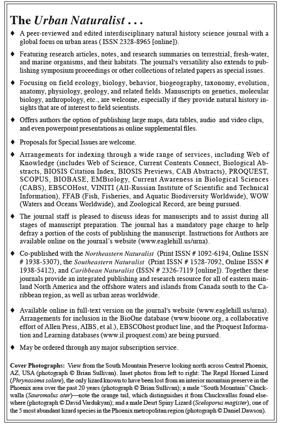 Inside Front Cover of the Urban Naturalist, Number 2, 2014