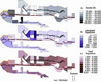 Figure 2a–c. : Census-tract neighborhoods in Greater Vancouver depicting a) trends in mean family income levels (20% of sample data), b) aboriginal population densities in 1996, and c) total population densities in 1996.