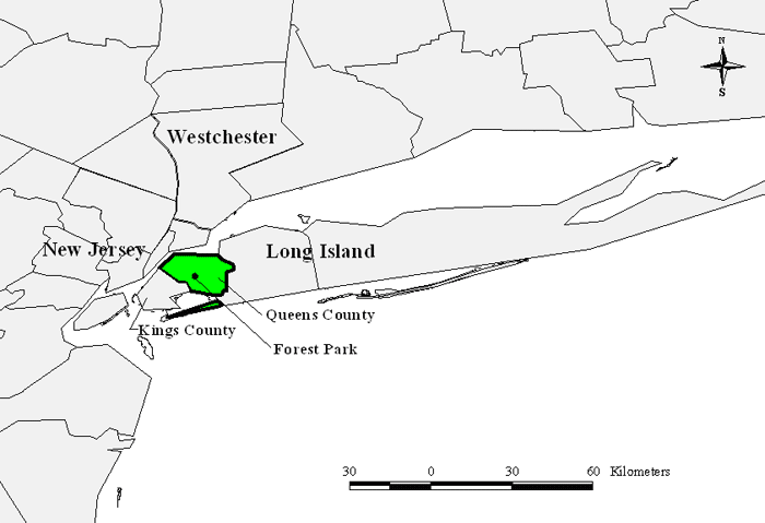 In 1892, the New York legislature authorized the Brooklyn Parks Department to purchase the first parcel of parkland in Queens County (Figure 1). Additional acquisitions occurred into 1898, resulting in the expansion of the parkland to 218 hectares. Originally called Brooklyn Forest Park, it was transferred to the city of New York with the consolidation of Greater New York in 1898. The park, along with other parks in Brooklyn and Queens, was managed by the Brooklyn Parks Department until the Queens Department of Parks was established in 1911. Brooklyn Forest Park was renamed Forest Park and served as a multiuse park intended to provide a variety of recreational amenities to the public, including natural areas. Land use within the park area from the colonial period to the end of the 19th century had consisted mainly of timber harvesting, farming, and cattle grazing. These activities were halted when the park was established (New York City DPR, 1990). The designation of a 218-hectare park in Queens County amid a burgeoning human population (now exceeding 2.3 million inhabitants) was a crucial step in the conservation of local biodiversity.