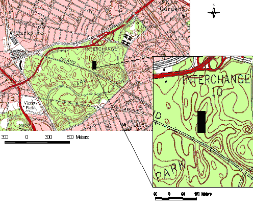 Forest Park (42° 30' north latitude and 73° 51' west longitude) is located in southwest Queens County and situated along the Harbor Hill terminal moraine of the southern point of the Glaciated Appalachian Plateau, formed by the Wisconsin glaciation (Cunningham & Ciolkosz, 1984; Greller et al., 1979; Sanders, 1974). The topographic elevations from the 1935 New York City Department of Parks maps series range from 18 to 42 meters (m) above sea level (Figure 2).
