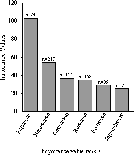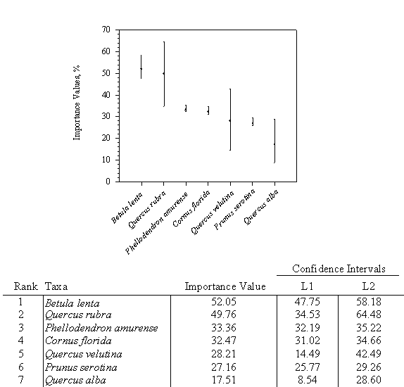 The bootstrap 95% confidence intervals were used to determine the certainty of a parametric mean, such as the species importance values (Manly, 1997). Confidence intervals were determined for seven of the ecologically dominant taxa (Figure 5).