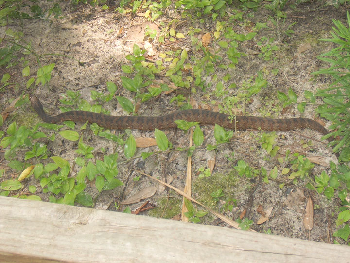 We opened traps for periods of four days each and checked them systematically every day so that these observations coincided with the approximate time they had been set the day before. This ensured that all traps were open for the same amount of time each day (approximately 24 hours), allowing for equal sampling effort per trap. On the fourth day, we closed traps until the next sampling period. Each day, we identified the species of captured specimens and then promptly released them without marking them. We sampled herps from mid-May through early August. Arrays were open for 23 days during the summer of 2005 and for 24 days during the summer of 2006. Occasionally, flooding from heavy rains forced us to close some traps. In this event, we reopened the closed traps during the same week for the amount of sampling time lost to inclement weather. When trapped specimens were negatively affected by the presence of ants at sampling locations, we were forced to close funnel traps indefinitely.